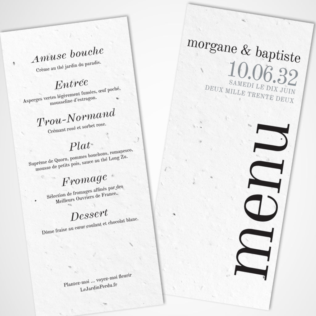 Grâce à nos cartes de menu à planter maintenant vous pouvez apporter la touche finale à votre décoration de table tout en respectant l’environnement.