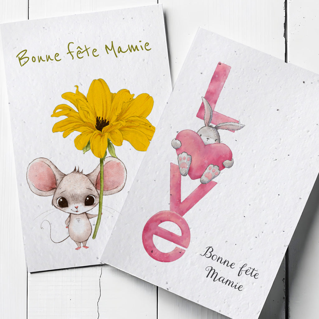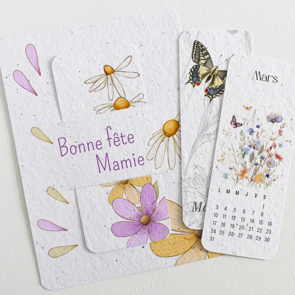 Découvrez notre jolie collection de cartes et cadeaux uniques et écoresponsables. Fabriqués à partir de papier ensemencé, tous nos produits se transforment en joli bouquet de fleurs !
