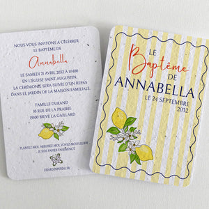 Our eco-friendly baptism invitations are made from seed paper, recycled paper embedded with flower seeds. Following the special day your guests can plant their environmentally friendly invitation in a pot where it will bloom into a beautiful array of flowers. An extra special souvenir of your child's baptism