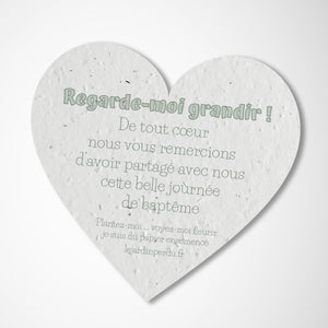 Le cœur est fabriqué à partir de papier ensemencé, une fois plantée il se transforme en fleurs! Un souvenir inoubliable du baptême de votre enfant. Un cadeau invite baptême écologique, original et magique!