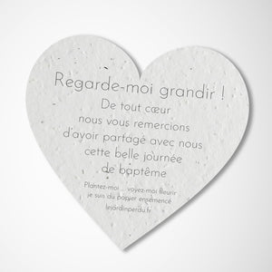 Le cœur est fabriqué à partir de papier ensemencé, une fois plantée il se transforme en fleurs! Un souvenir inoubliable du baptême de votre enfant. Un cadeau invite baptême écologique, original et magique!