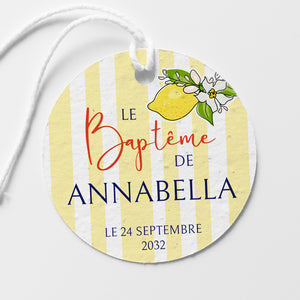 Nos étiquettes de baptême à planter apporteront la touche finale à votre décoration de table et aux cadeaux destinés à vos invités. Fabriquées à partir de papier ensemencé, après le baptême vos invités peuvent planter leur étiquette dans un pot, et voir pousser des belles fleurs. Un joli souvenir écoresponsable de cette journée spéciale.